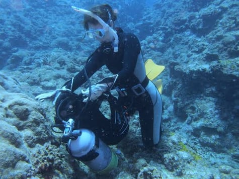 すべてのダイバーにおいて一番大切なスキルです。中性浮力とは宇宙空間にいるような無重力状態のことをいいます。水中で浮きもしない、沈みもしない状態を作ります。中性浮力を身につけるとでダイビングがより快適に楽しめるようになっていきます。水中環境にダメージも与えることもなくなるので水中マナーができる立派なダイバーとして周囲の方々から見られます。