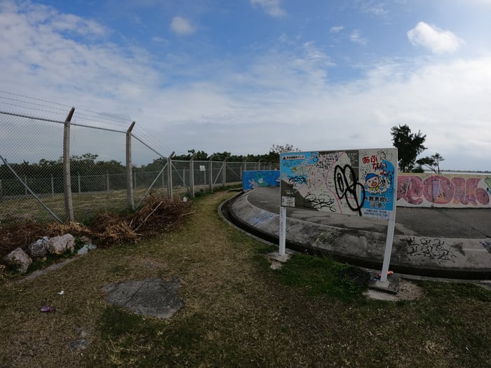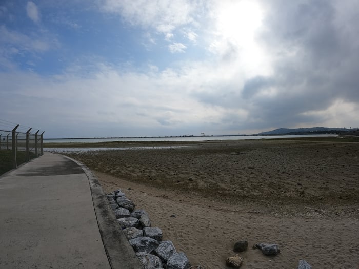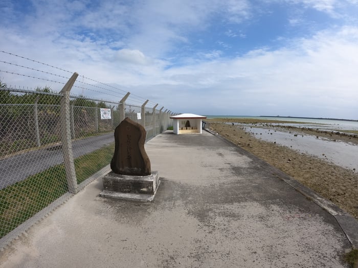 この聖龍神の場所はUSA基地外になります。基地のフェンスの周りの歩道を歩いていき、たどり着きます。