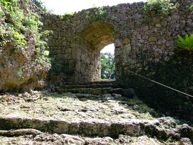 沖縄最古の歌謡集・おもろさうしにも「ちゑねんもりぐすく」と謡われた古いグスク。自然石を積んだ古城(くーぐすく)とアーチ門を備えた切石積みの新城(みーぐすく)の二つの郭からなっている。