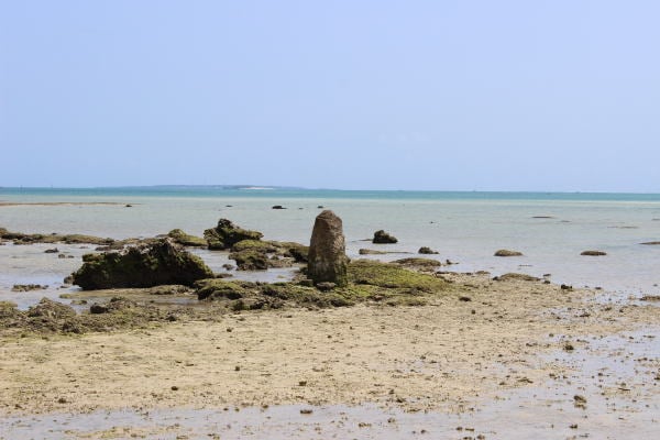 百名の浜川原にある拝所。琉球祖先神・アマミキヨがニライカナイ(海のはるか彼方にある神々の住む理想郷)から渡来し、久高島に降り立ち、次に本島に降り立った、その最初の地とのいわれがある。