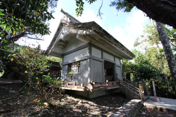 百名ビーチ北端の崖上に鎮座している御嶽。浜川とは海辺の湧き水のことで、その泉がハマガー(浜川)という御嶽名になったといわれている。