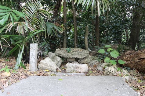その一方で、グスク頂上付近の岩陰や小洞窟には神墓と称されている拝所があり、ここは古代より祭祀遺跡としても名高い。周辺部からは、石斧や沖縄貝塚時代中期土器片、貝殻が採集されている。