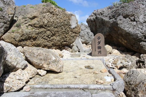 ここは、ヤハラヅカサに降り立ったアマミキヨが仮住まいをした地。琉球の創世神は、この浜川の清水で旅の疲れを癒し、ミントングスクに移動したという。