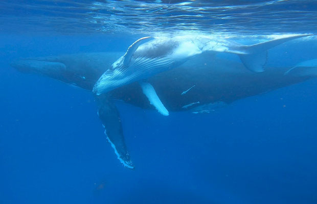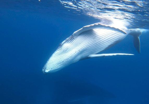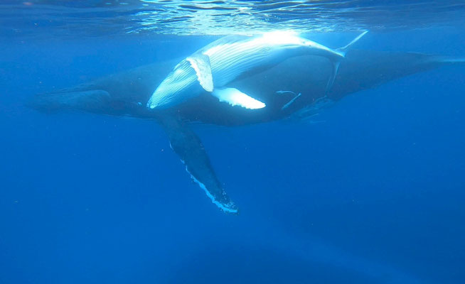 ・ホエールスイム以外にホエールウォッチング船がクジラを観察している場合は入水することはできません。